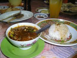 telur rebus, bawang goreng, irisan seledri dan emping goreng. Hidangkan.